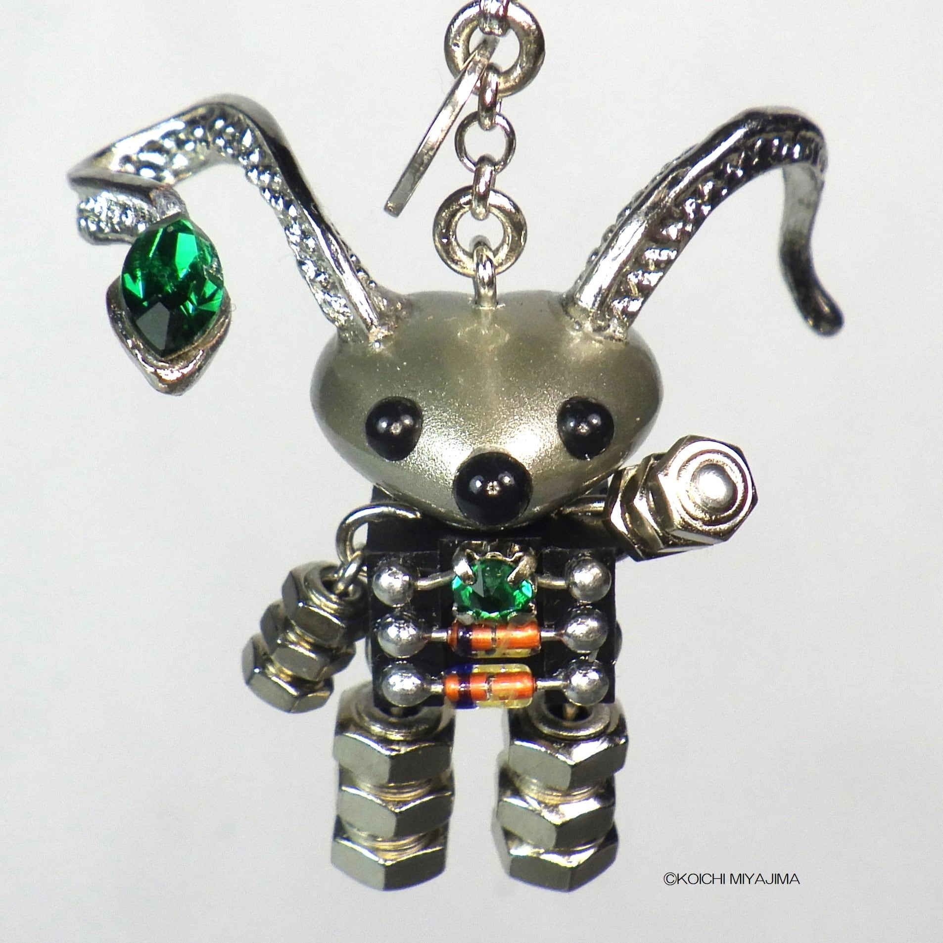 6ピンI Cスタンドを2個張り合わせた胴体に、緑色クリスタルとダイオードを無鉛ハンダ付け。