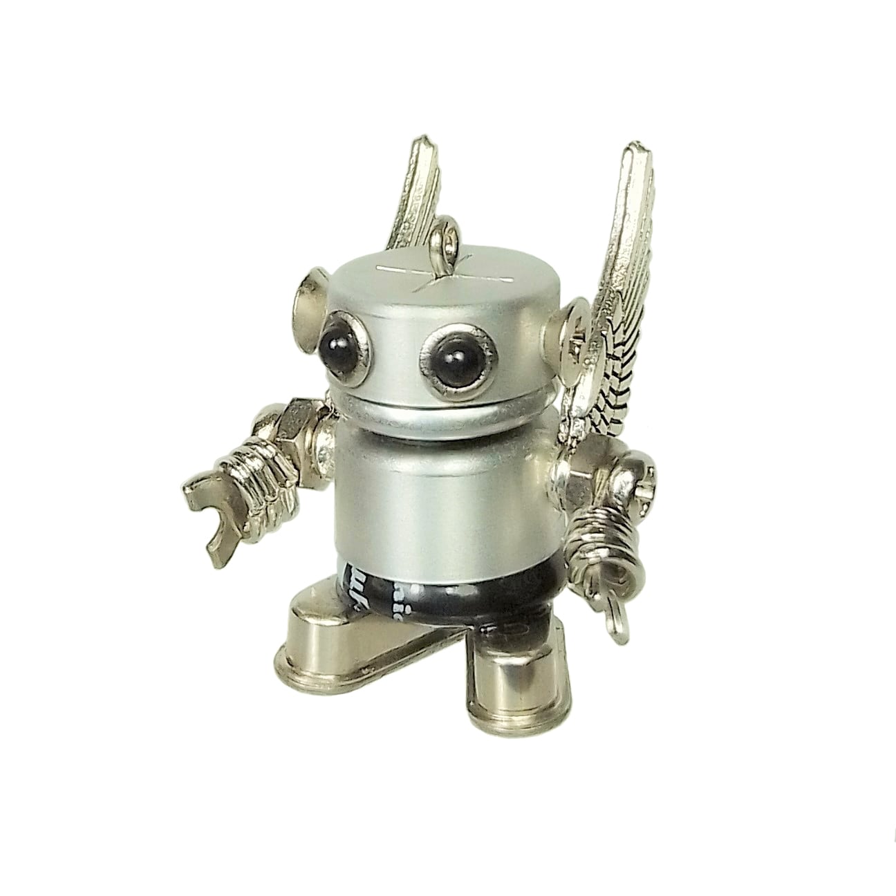 胴体には電解コンデンサーを使用。腕はアースラグ、靴は水晶発振器を使用。
